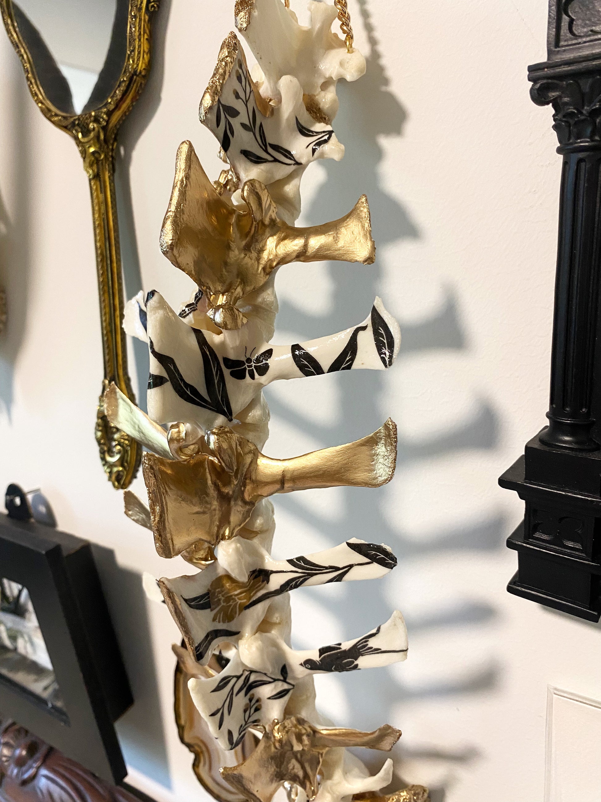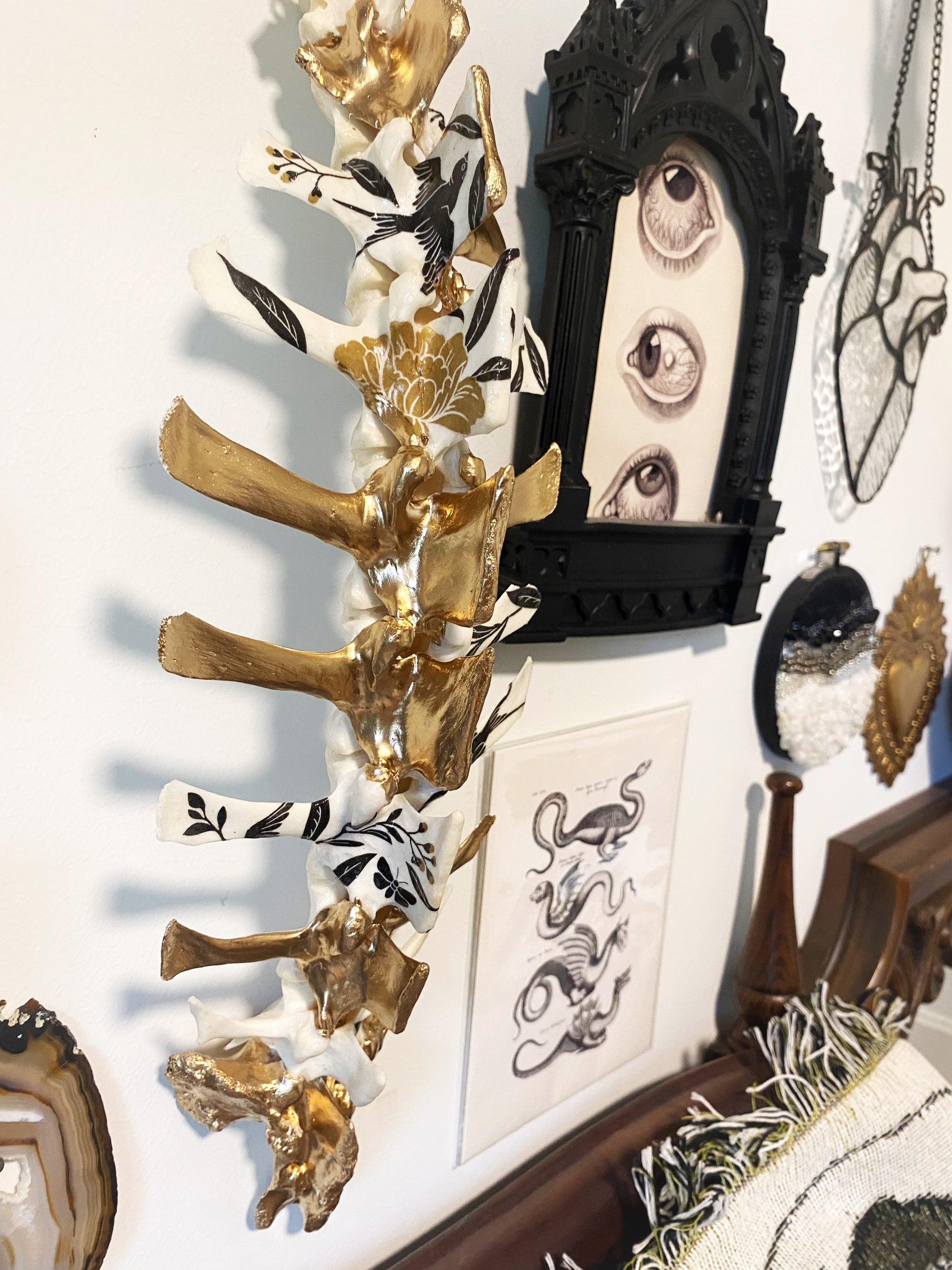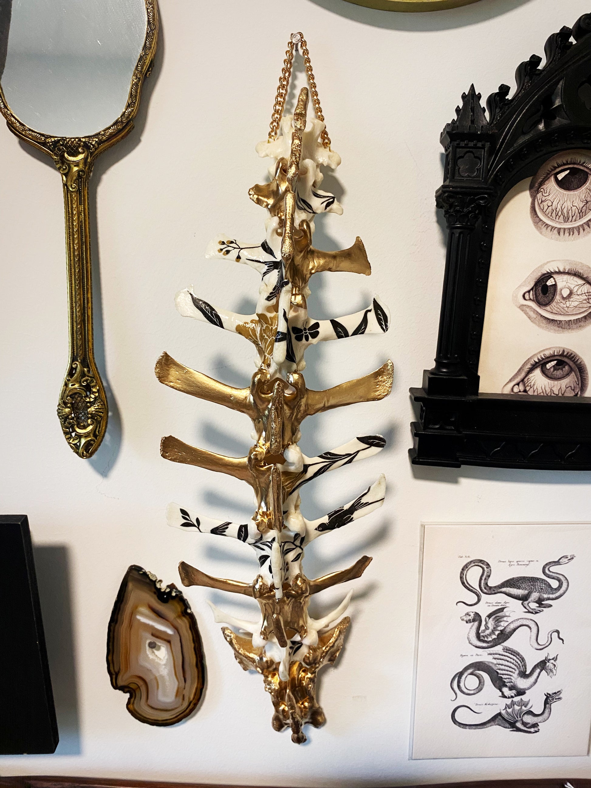 Each piece is individually handmade is uniquely different. Ethically sourced bones and skulls are not perfect, you may find cracks, teeth missing or discoloration. The goal of this art piece is to honor the remains and weave life into death.